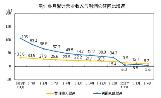 国家统计局工业司高级统计师朱虹表示,1-4月,工业企业利润增速回落主要受部分地区疫情冲击影响。目前长三角地区疫情防控形势有所好转,企业复工复产正稳步推进,疫情对工业企业的影响有望逐步减弱。