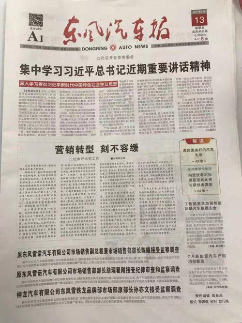 财经网汽车讯 8月14日消息,东风公司反腐行动持续进行,继5月20和6月4日神龙汽车两名高管被查后,近日又有多名高管因涉嫌严重违纪违法接受纪律审查和监察调查。据《东风汽车报》13日刊登,东风汽车合资公司神龙汽车和东风雷诺共计三名高管被查。