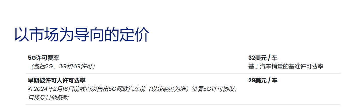 Avanci官网显示,其5G项目早期签署的优惠费率是每辆车29美元。在每辆5G网联汽车的整个生命周期当中只需支付一次费用。